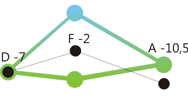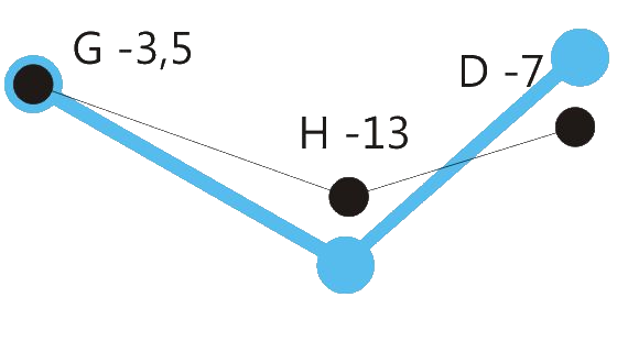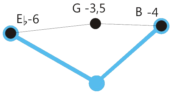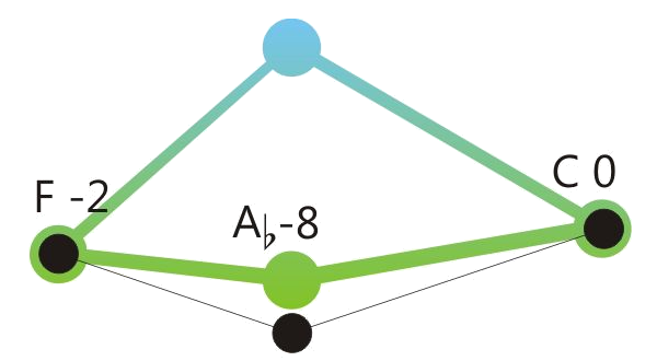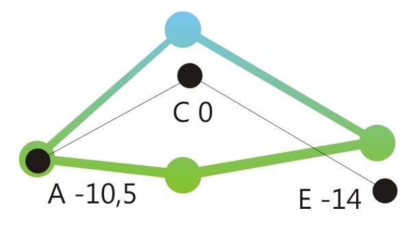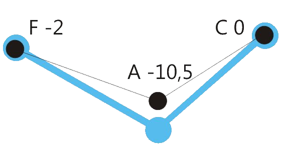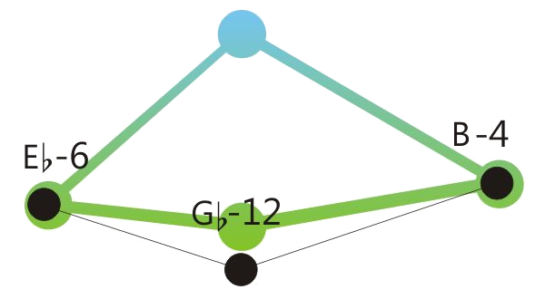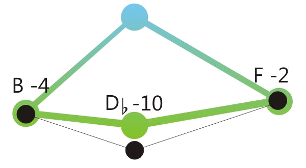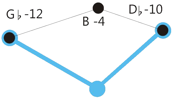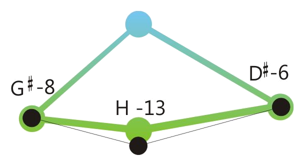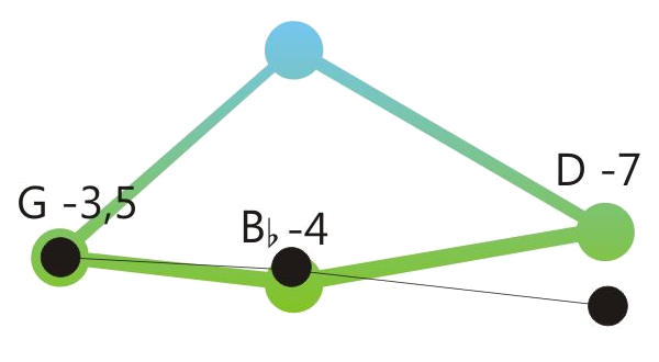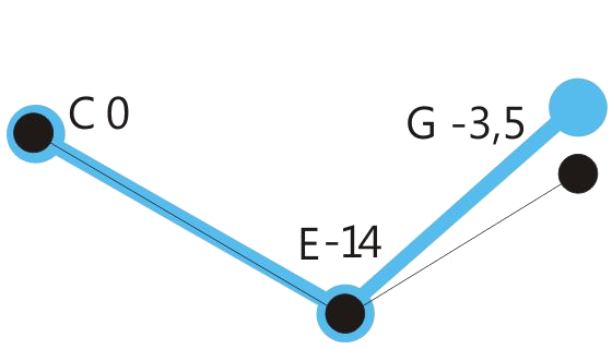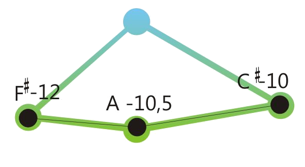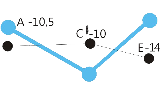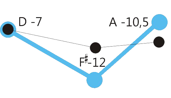 Schwerpunktlagerung bedeutet: Die Summe der Abweichung aller augenblicklich erklingender Töne von der gleichstufigen Stimmung entspricht meist dem Wert „0“. Siehe nachstehende Zeichnungen.
