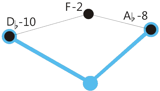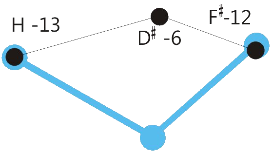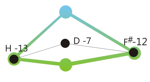 Für den zweiten Ton der Tonleiter, das D, benötigte man zwei verschiedenen Positionen: Eine höhere für die Dominante G-H-D und eine tiefere für die Subdominantparallele D-F-A. Die Tonhöhendifferenz beträgt 22 Cent, das schon erwähnte „Syntonische Komma“.